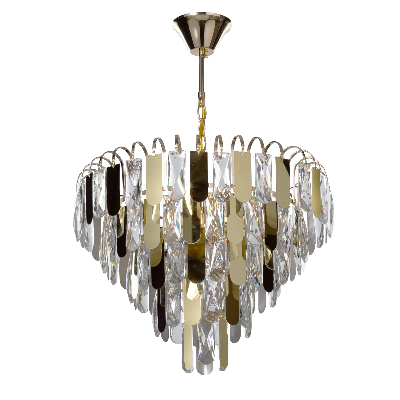 Актуальная комбинация декоративных металлических подвесок золотого цвета и хрусталя.