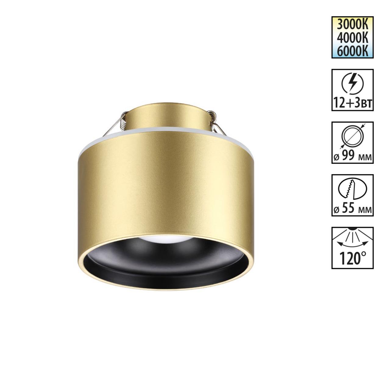 <name>358963 SPOT NT22 447 бронза св. Светильник встраиваемый с переключ. цв. температуры IP20 LED 3000К\4000К\6000К 12W вниз + 3W вверх 110-265V GIRO</name>