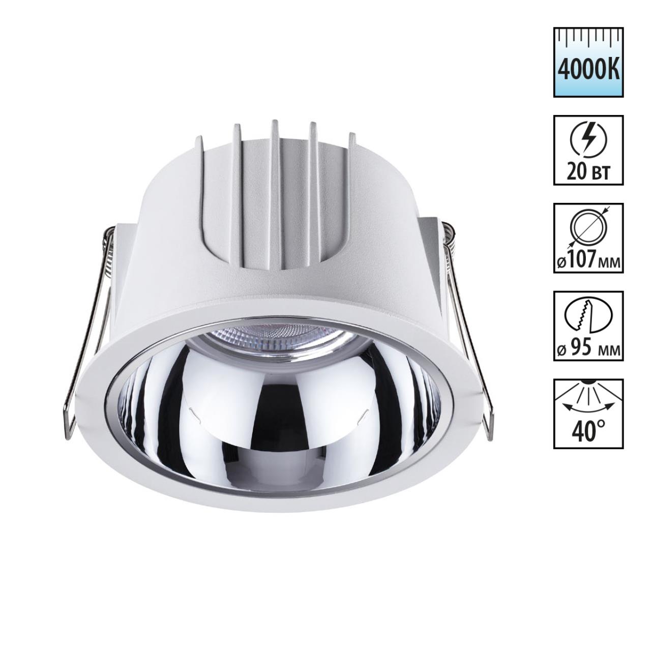 Просмотр товара 358693 SPOT NT21 462 белый/хром Светильник встраиваемый светодиодный IP20 LED 4000К 20W 100-265V KNOF