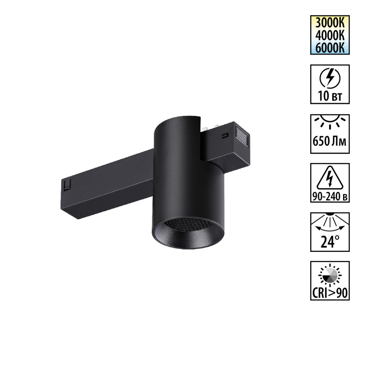 359954 PORT NT25 218 черный Трековый светильник с переключ. цв. темпер. IP20 LED 3000К\4000К\6000К 10W 90-240V VECTOR |
