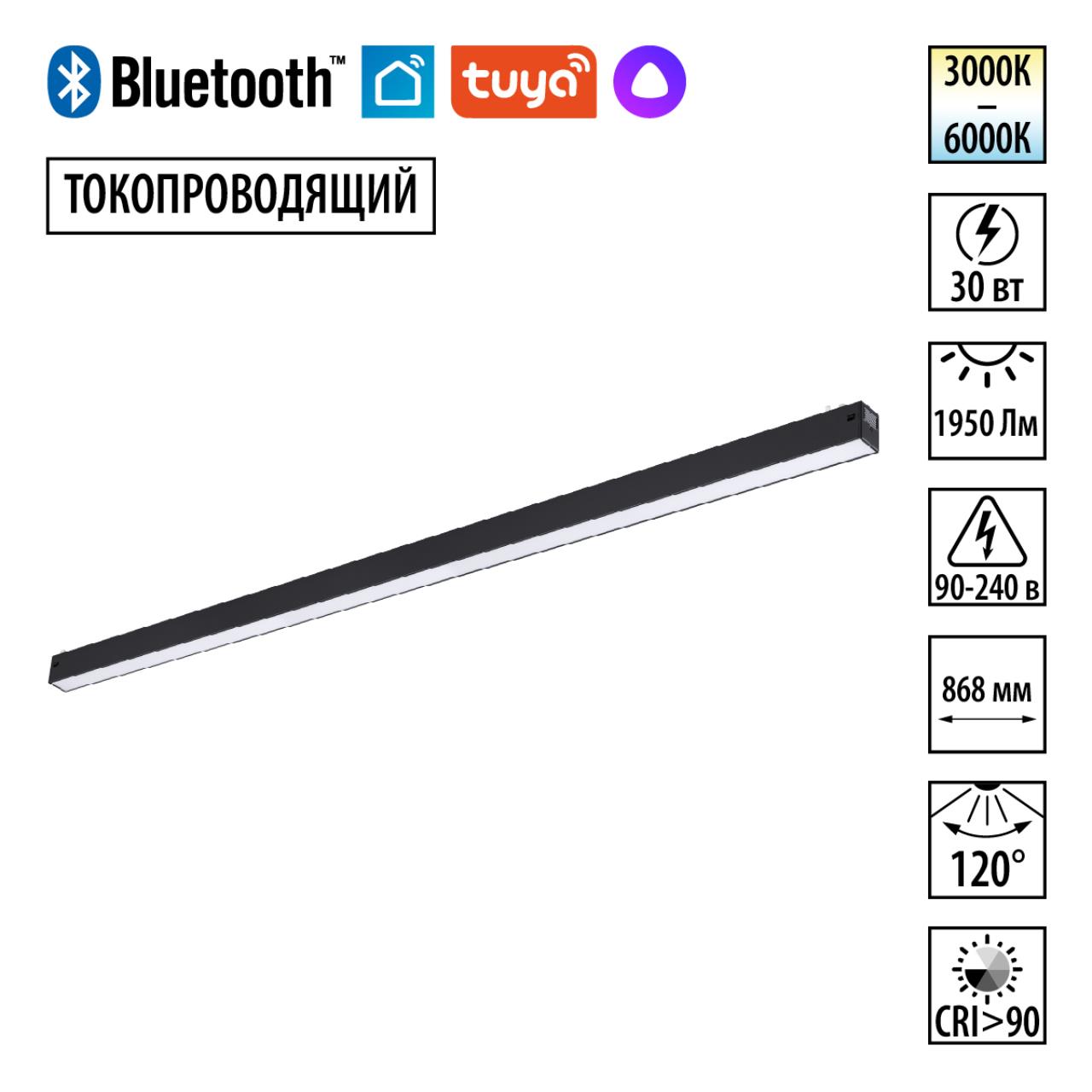 359943 PORT NT25 210 черный Трековый св-к диммир. со сменой цв.температуры, пульт ДУ/Tuya Smart Life IP20 LED 30W 3000-6000K 90-240V VECTOR |
