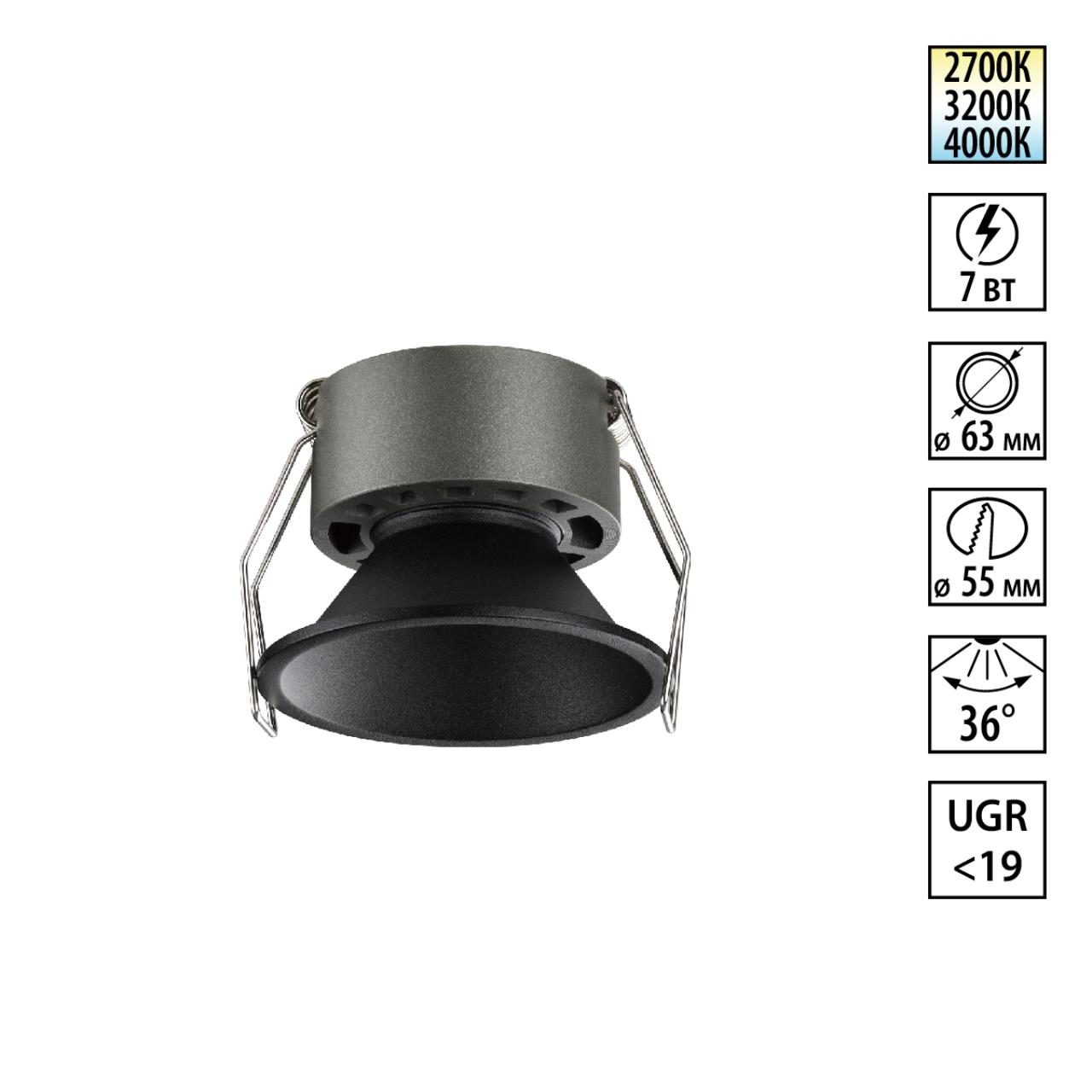 359849 WIR NT25 506 черный Светильник встраиваемый с переключателем цв. температуры IP20 LED 7W 220-240V 2700К\3200К\4000К NOVA |