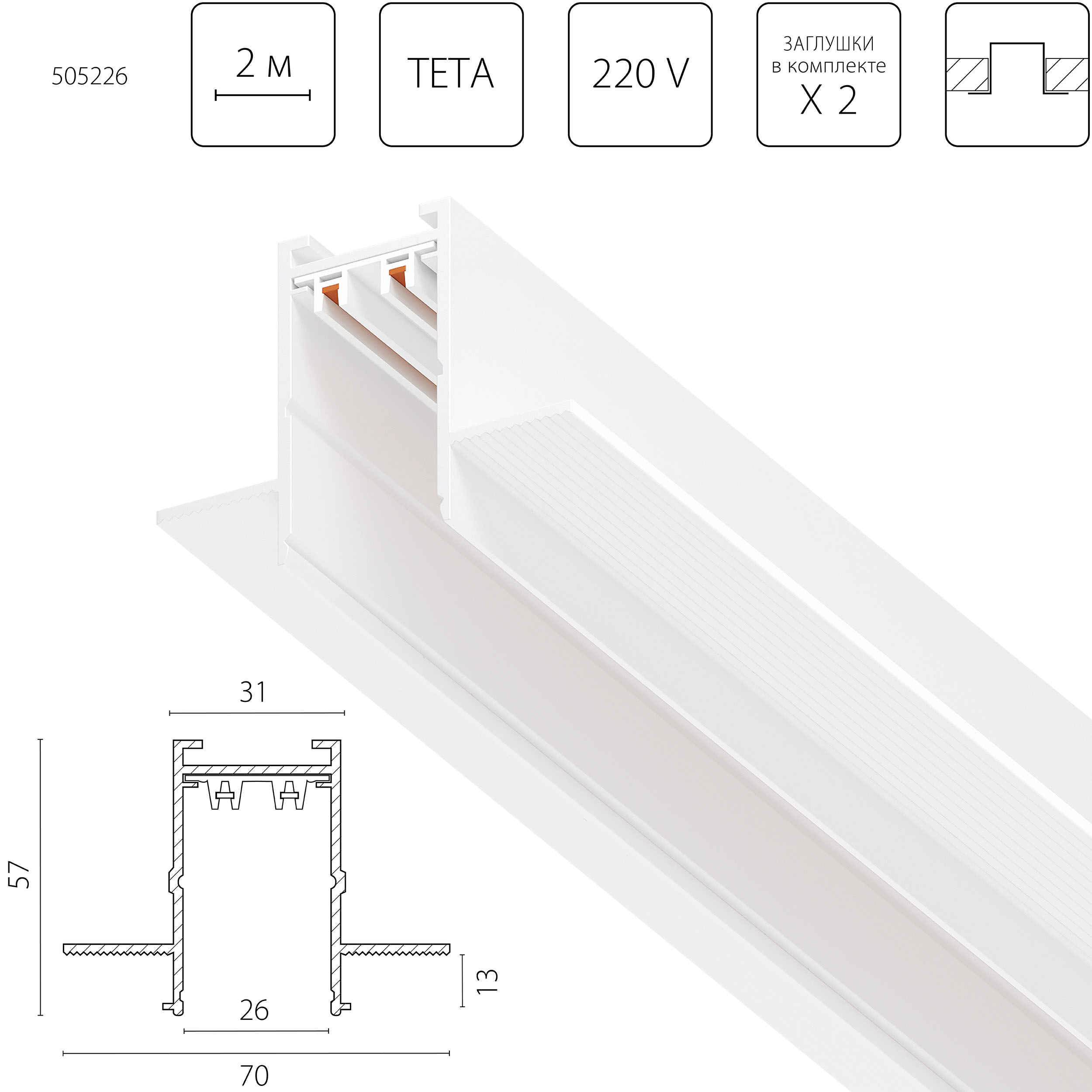 Трек PRO 220V, 2 метра Teta Pro Lightstar 505226 |